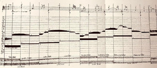 ブクレシュリエフの『群島』のB1サイズの紙にびっしり荒削りのタッチで書き込まれた14のアイデアの島🏝️。これを「その場」で奏者が本能で形作る。そして、L.クープランのノンムジュレの譜面。ここにはリズムも小節線もありません。また星谷丈生さんの、幾何学的拡大譜面。ここには、1拍内に既に過重な情報量が詰め込まれ、流動的…
